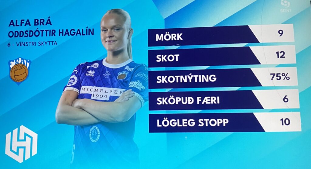 Vinstri skytta: Alfa Brá Oddsdóttir Hagalín, Fram 2*.