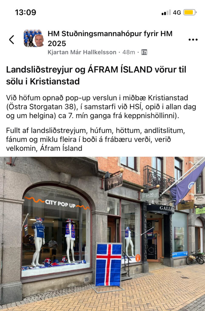 Opnuð hefur verið svokölluð pop-up verslun í miðbæ Kristianstad, nánar tiltekið í Östra Storgatan 38. Verslunin er í samstarfi við HSÍ og þeirra sem halda búðinni opinni. Opið er alla helgina. Frá versluninni er u.þ.b. sjö mínútna ganga að keppnishöllinni.