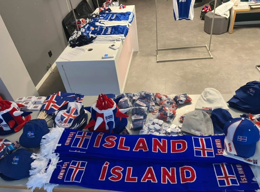 Til sölu er fullt af landsliðstreyjum, húfum, höttum, andlitslitum, fánum og miklu fleira í boði á frábæru verði, verið velkomin, segir í tilkynningu sem handbolta.is barst.