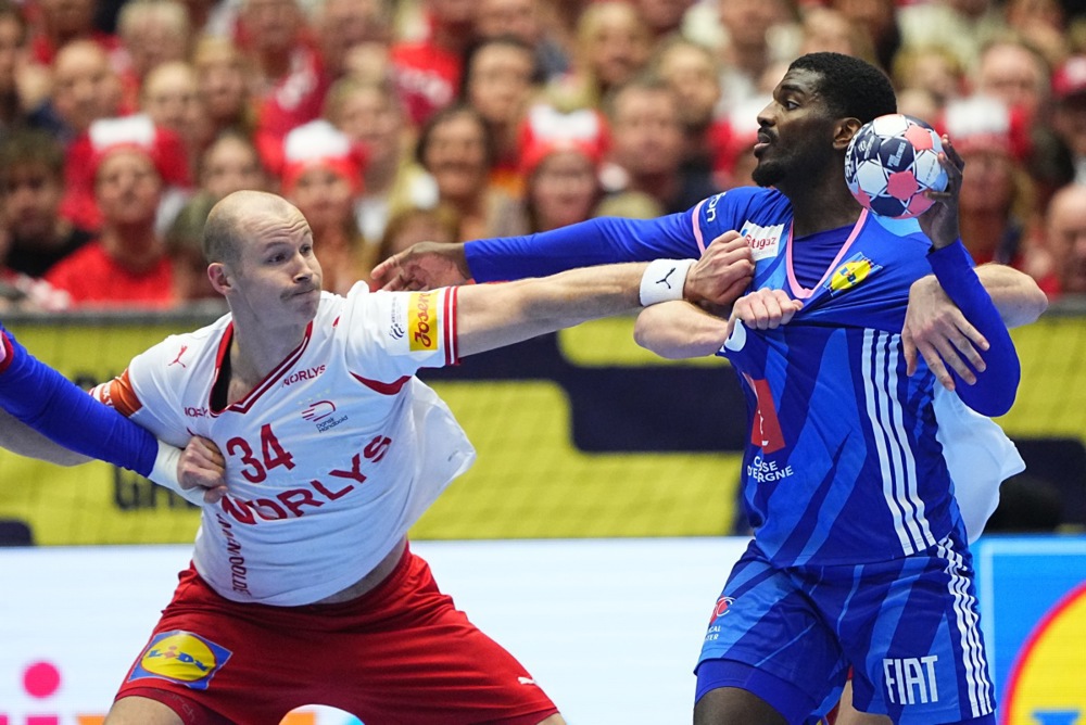 Danir sýndu styrk sinn, ekki síst á síðustu 10 mínútunum þegar þeir komust yfir í annað sinn í leiknum, 25:23 með fjórum mörkum í röð sex mínútum fyrir leikslok. Frökkum tókst ekki að komast yfir eftir það. Þeir minnkuðu muninn í eitt mark, 29:28, þegar þrjár mínútur voru eftir af leiktímanum. Eftir það voru Danir beittari, jafnt í vörn sem sókn í þéttpakkaðri keppnishöllinni, Jyske Bank Boxen í Herning á Jótlandi.
