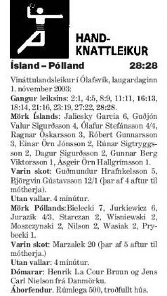 Fyrsta landsleikur Björgvins Páls var gegn Póllandi í Ólafsvík 1. nóvember 2003; 28:28.