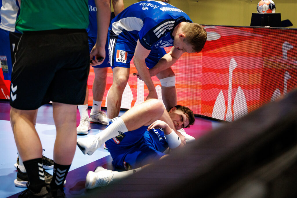 Margir gripu andann á lofti þegar Orri Freyr lá í gólfinu þjakaður en fyrr í leiknum fékk Haukur Þrastarson mikið högg á kinnbein þegar hann varðist. Elvar Örn Jónsson meiddist í leiknum við Ungverja á þriðjudaginn og verður ekkert meira með á mótinu.