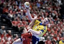 Haukur Þrastarson og samherjar hans í pólska meistaraliðinu Industria Kielce höfnuðu í fjórða sæti í A-riðli Meistaradeildar Evrópu en keppni í riðlinum lauk í kvöld. Industria Kielce gerði jafntefli við Aalborg Håndbold, 35:35, í Álaborg í lokaumferðinni. Haukur skoraði eitt mark og var einu sinni vikið af leikvelli. Alex Dujshebaev var markahæstur Kielce-manna í leiknum … Continue reading Landsliðsmennirnir unnu í lokaumferð A-riðils