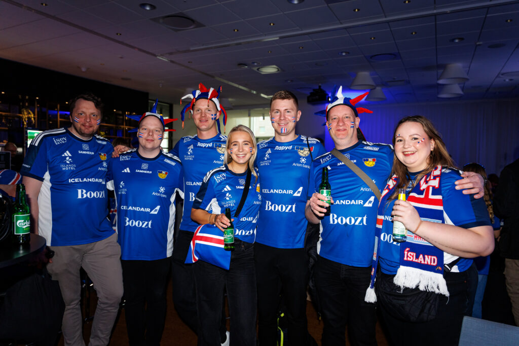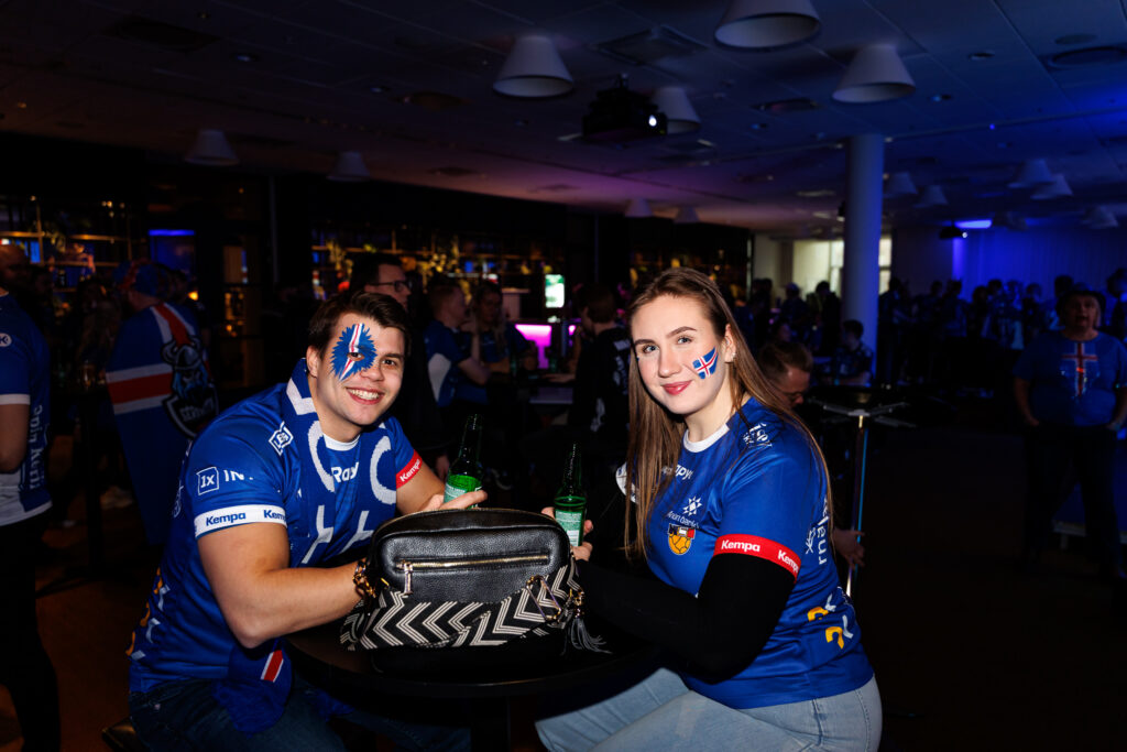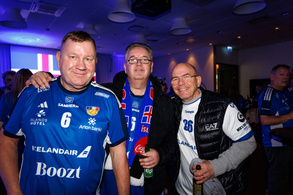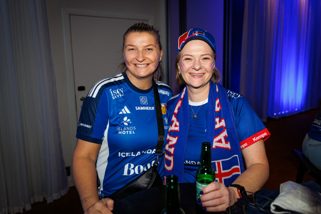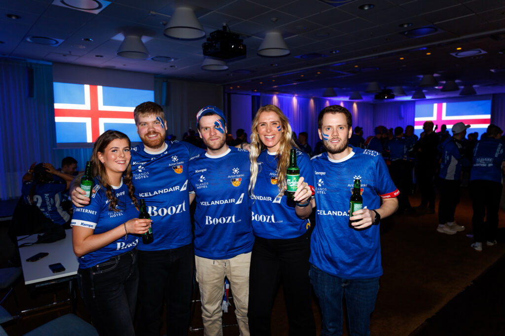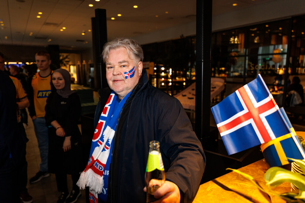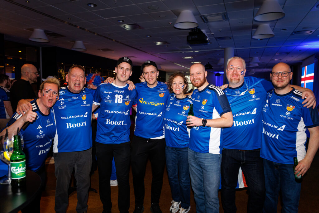 Fjöldi af hressum Íslendingum mætti í stuðningsmannapartý Sérsveitarinnar, stuðningsmannafélags handboltalandsliðanna, á Quality hótelinu í Malmö, skammt frá Malmö Arena þar sem viðureign Íslands og Króatíu á Evrópumótinu í handknattleik hefst klukkan 14.30.