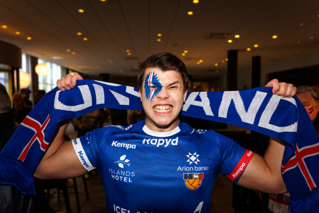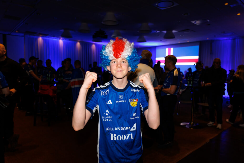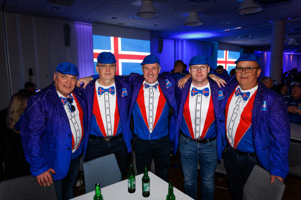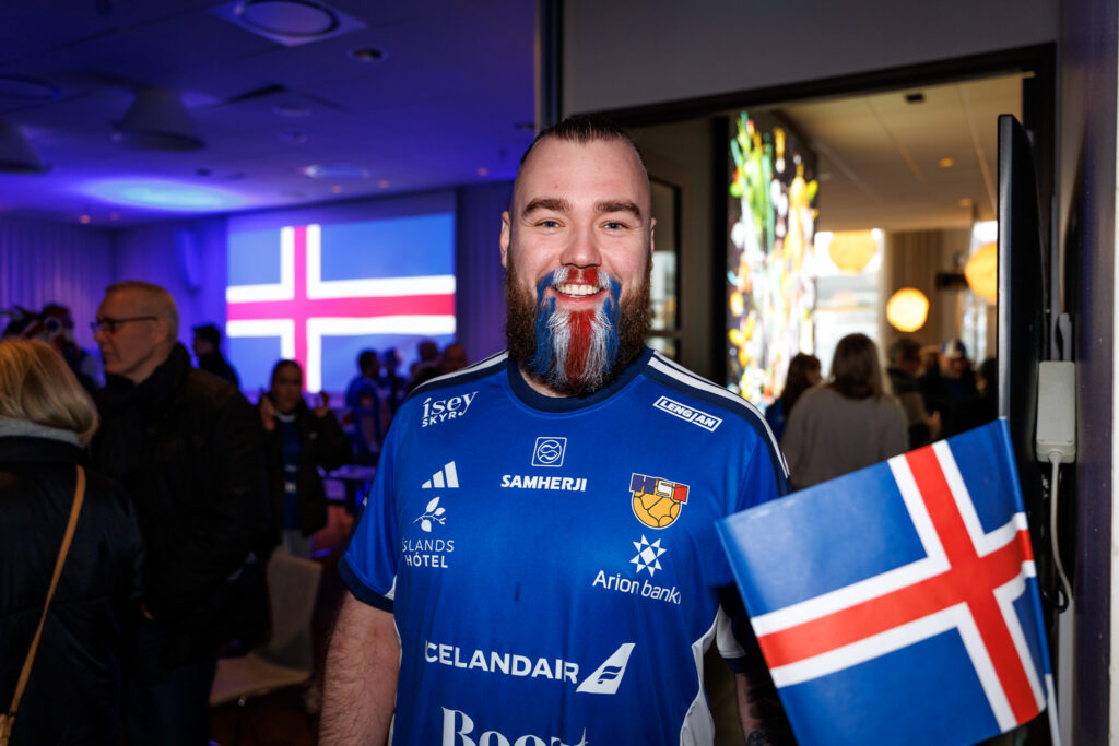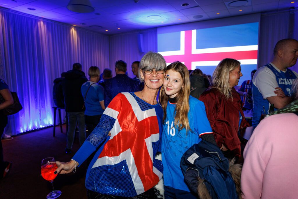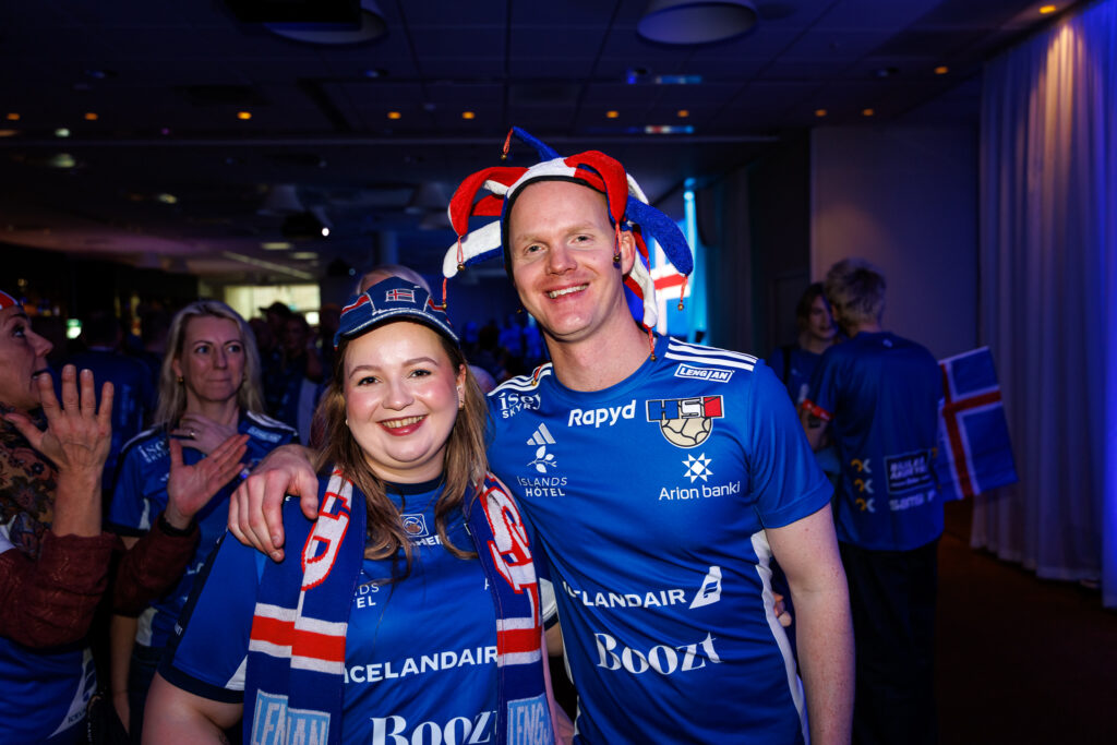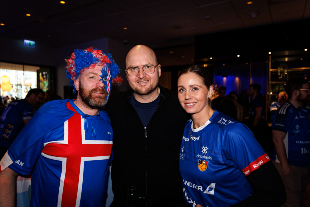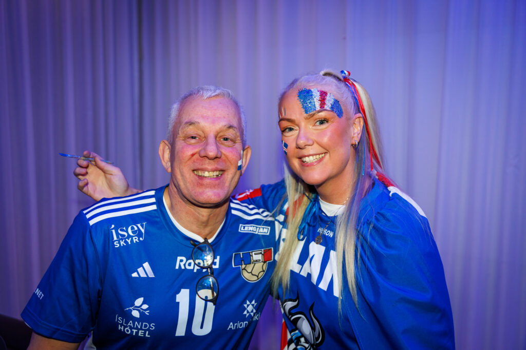 Fjöldi af hressum Íslendingum mætti í stuðningsmannapartý Sérsveitarinnar, stuðningsmannafélags handboltalandsliðanna, á Quality hótelinu í Malmö, skammt frá Malmö Arena þar sem viðureign Íslands og Króatíu á Evrópumótinu í handknattleik hefst klukkan 14.30.