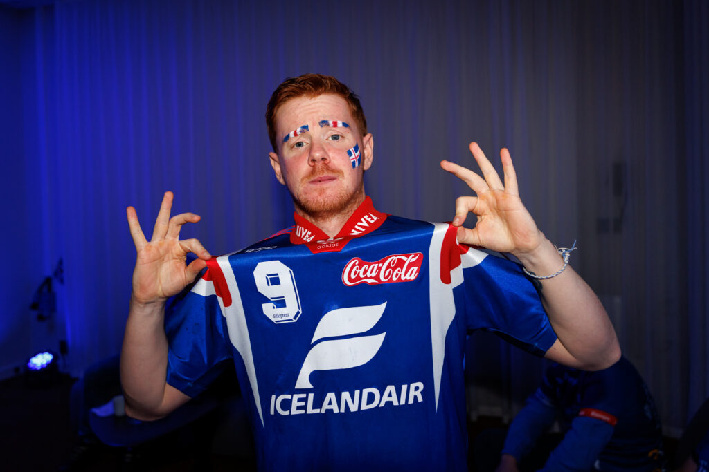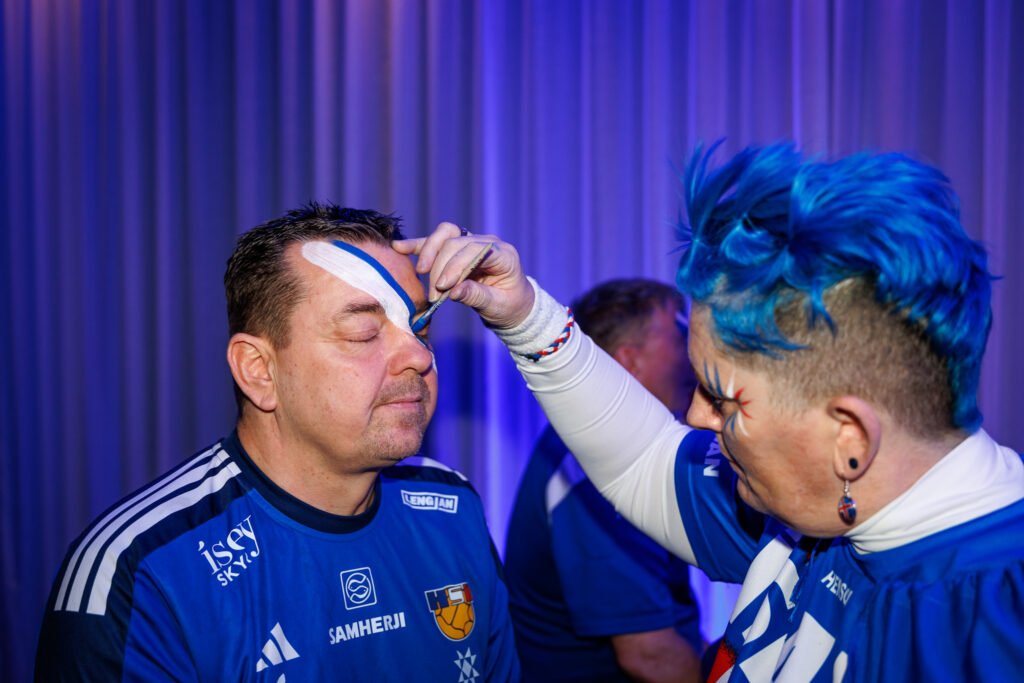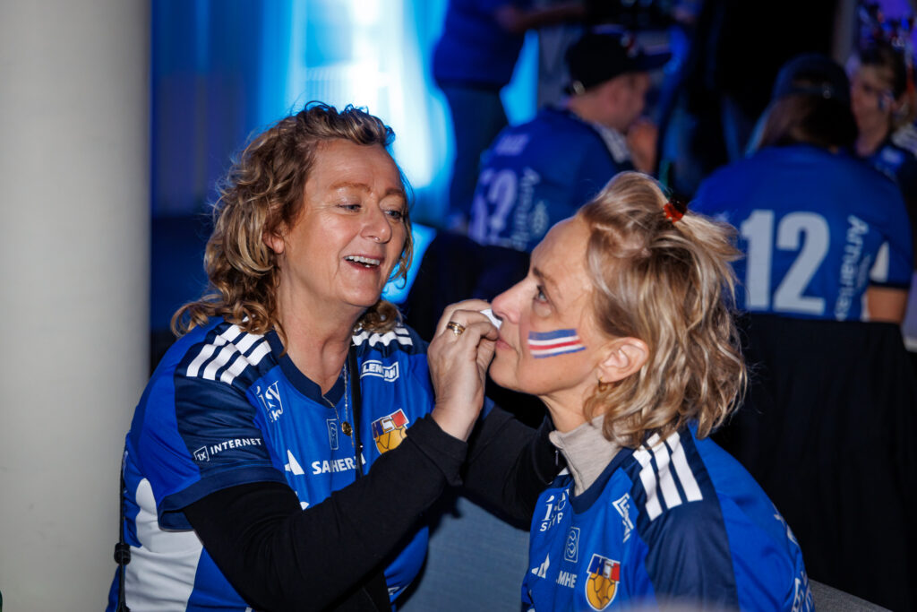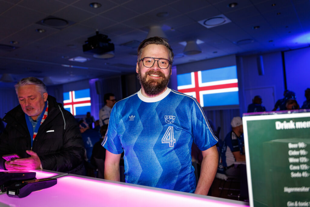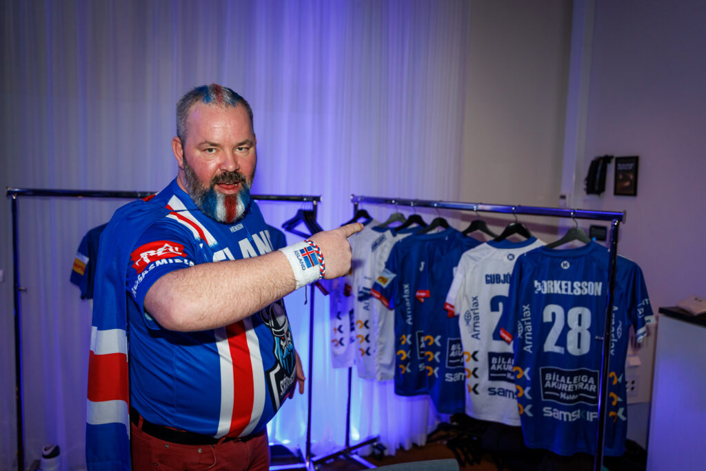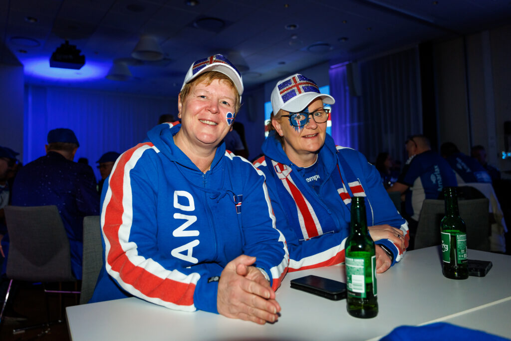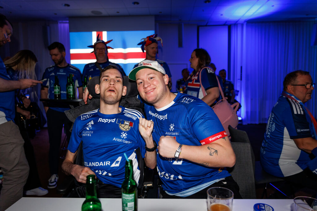 Fjöldi af hressum Íslendingum mætti í stuðningsmannapartý Sérsveitarinnar, stuðningsmannafélags handboltalandsliðanna, á Quality hótelinu í Malmö, skammt frá Malmö Arena þar sem viðureign Íslands og Króatíu á Evrópumótinu í handknattleik hefst klukkan 14.30.