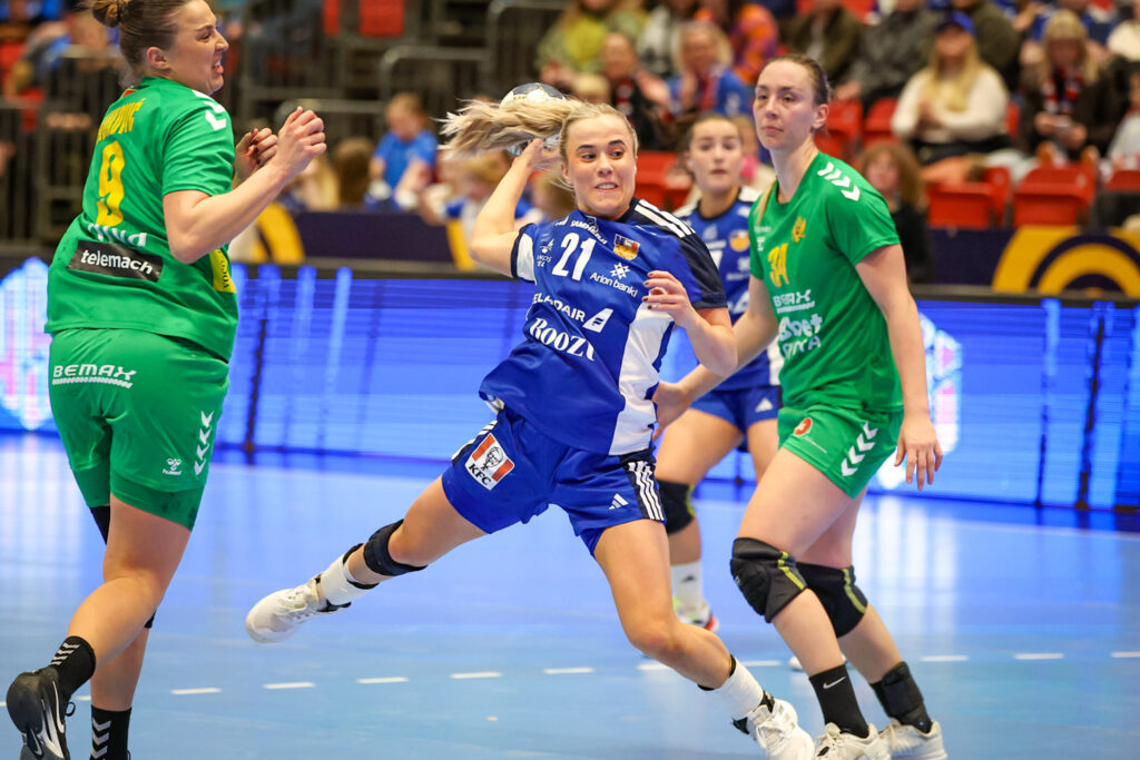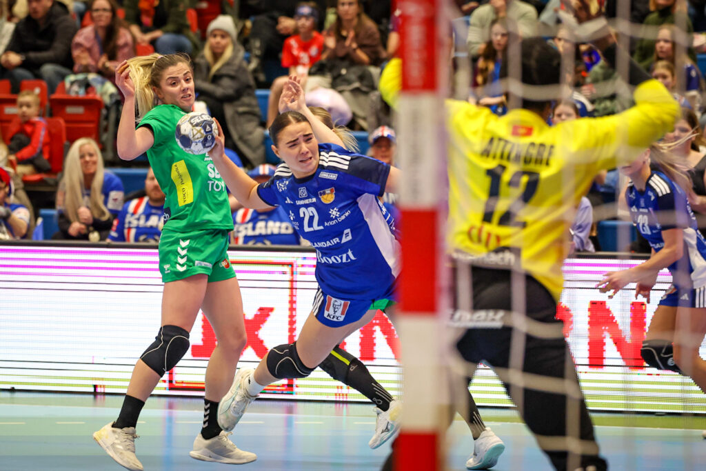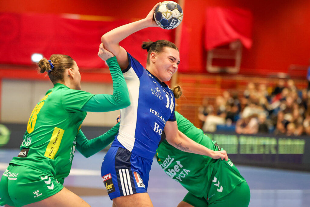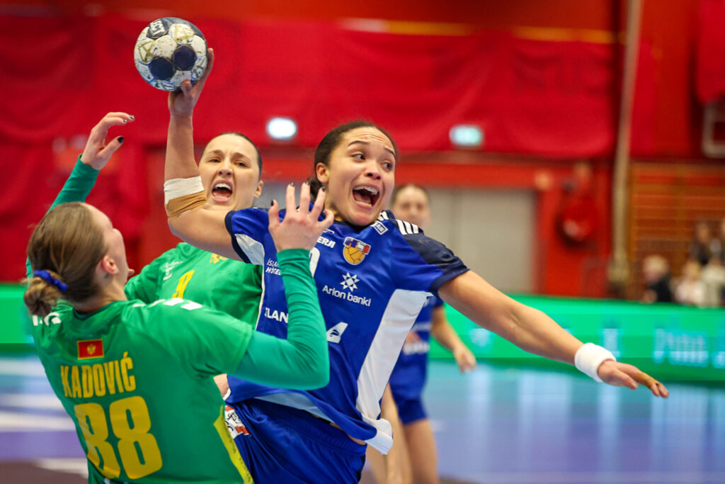 Íslenska landsliðið í handknattleik kvenna vann frækinn sigur á Svartfellingum, 28:27, í 3. umferð undankeppni Evrópumóts kvenna í Kuehne+Nagel-höllinni á Ásvöllum í kvöld. Þar með komst íslenska liðið inn á sporið á nýjan leik á leið sinni að lokakeppni Evrópumótsins sem fram fer í desember í fimm Evrópulöndum. Um leið var þetta fyrsta tap Svartfellinga í undankeppninni.