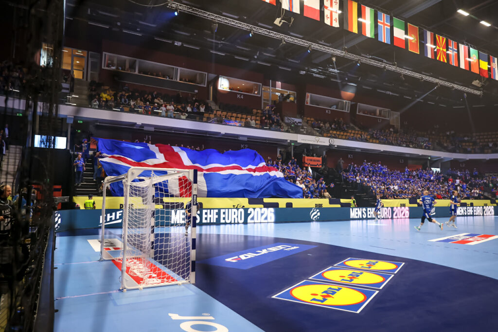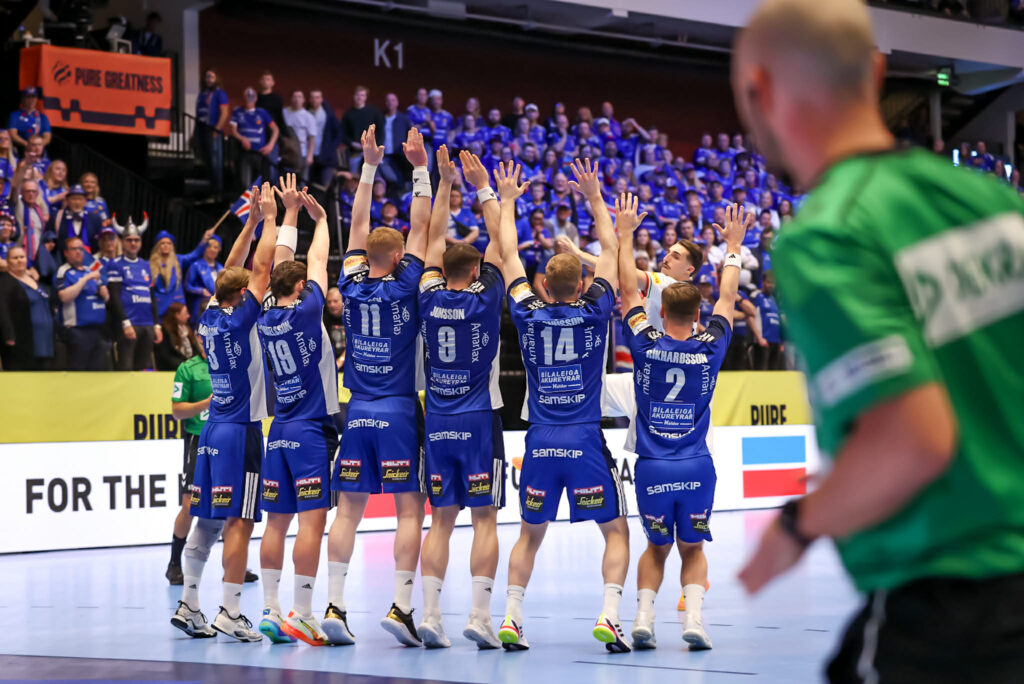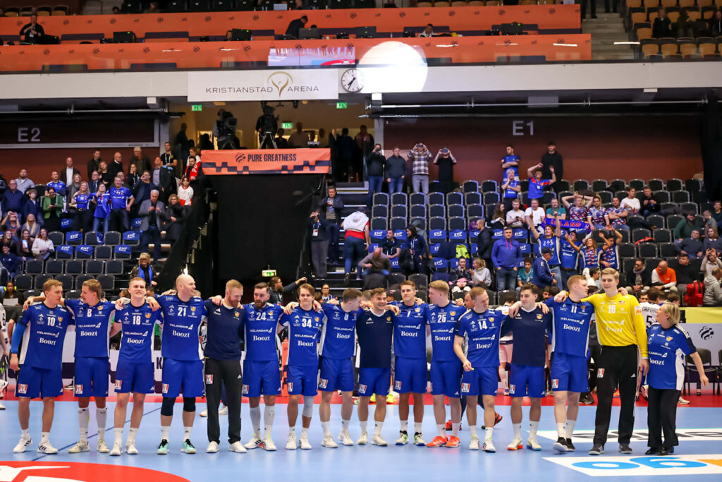 Um fyrsta leik liðanna á mótinu var að ræða og var kátt á hjalla hjá leikmönnum og þeim 3.000 Íslendingum sem lögðu leið sína í Kristianstad Arena í Kristianstad í Svíþjóð.