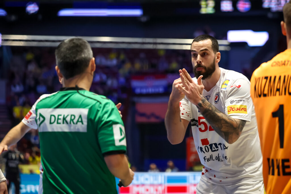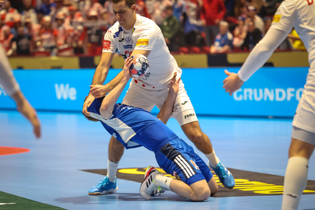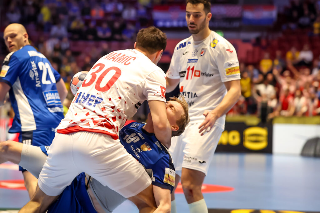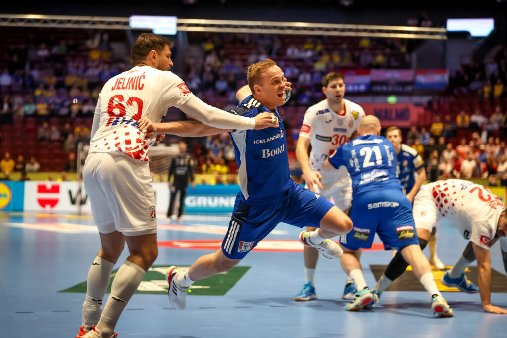 Gífurlega hart var barist þegar Ísland og Króatía öttu kappi í fyrstu umferð milliriðils 2 í Malmö Arena í Malmö í Svíþjóð í dag.