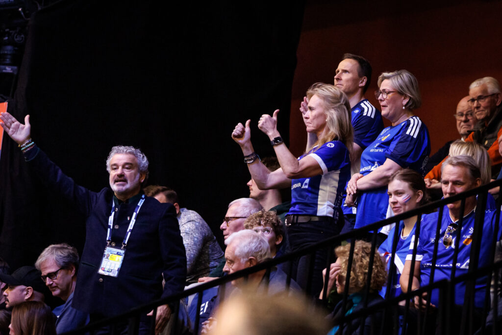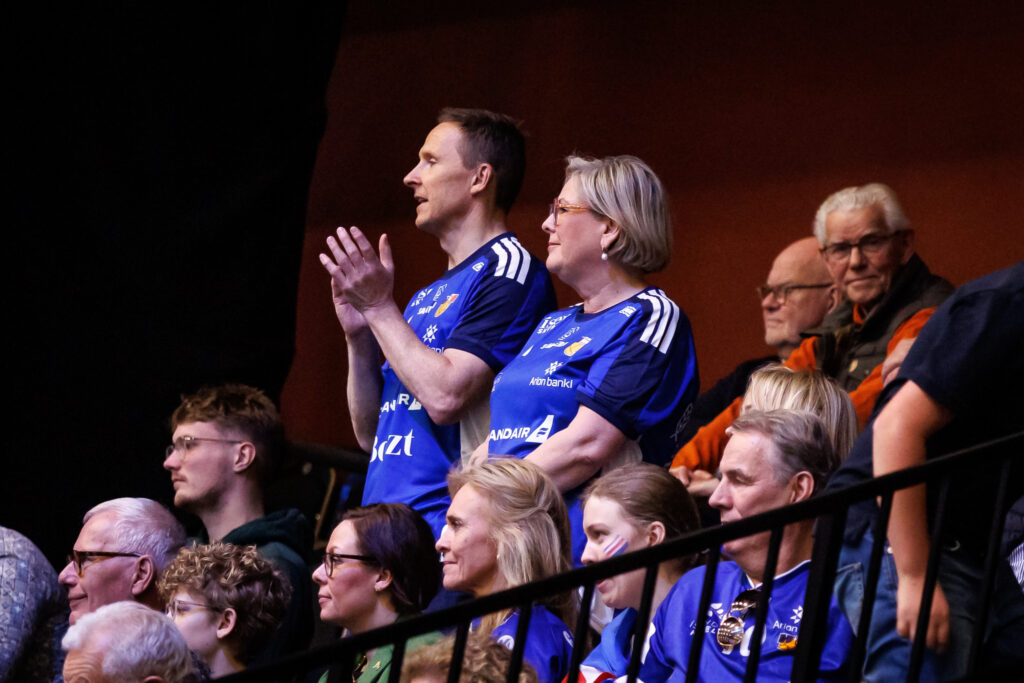 Forseti Íslands, frú Halla Tómasdóttir, og eiginmaður hennar, Björn Skúlason, voru á meðal áhorfenda ásamt utanríkisráðherrum Íslands og Svíþjóðar. Frú Halla veitti viðurkenningu til besta leikmanns viðureignarinnar, Janus Daða Smárason, í leikslok og slóst í hópinn með landsliðsmönnum með sungið var við raust, Lífið er yndislegt, að leikslokum.