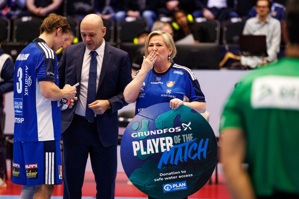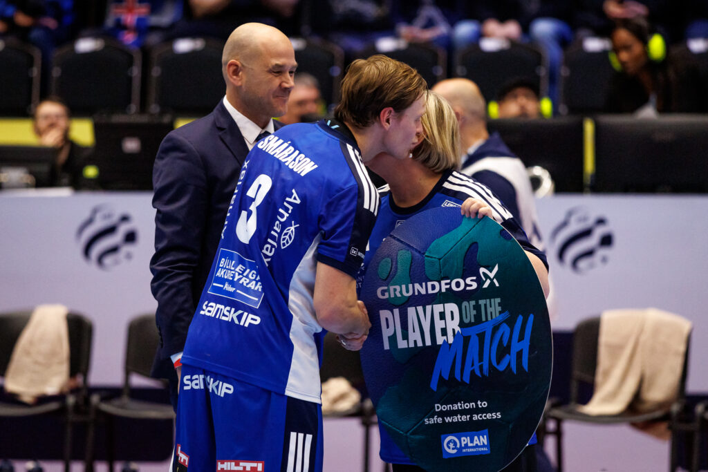 Allt fór hið besta fram og í samræmi við úrslit leiksins, 39:26, fyrir íslenska landsliðið sem fékk þar með fljúgandi start á Evrópumótinu.