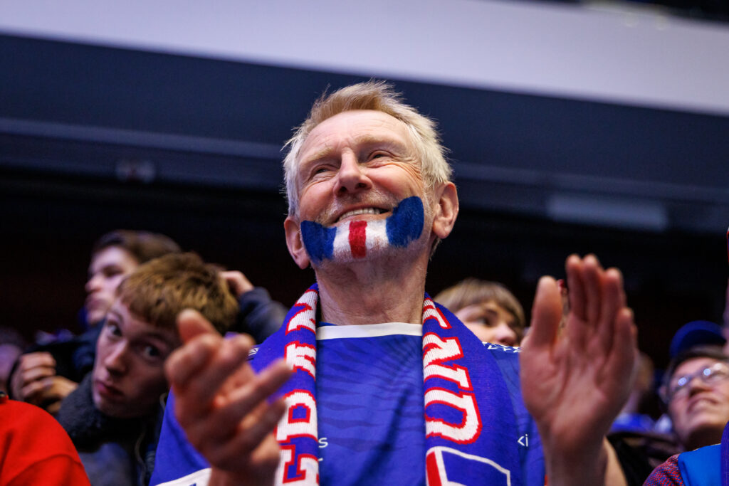 Af 3.202 áhorfendum sem greiddu aðgangseyri að leiknum voru því næstallir Íslendingar. Hreimur Örn Heimisson söngvari og Ástarpungarnir frá Siglufirði sáu um að hita mannskapinn upp á stuðningsmannasvæðinu fyrir leikinn. Eftir að viðureignin hófst sáu sextán handknattleikskappar frá Íslandi um að halda áhorfendum við efnið.