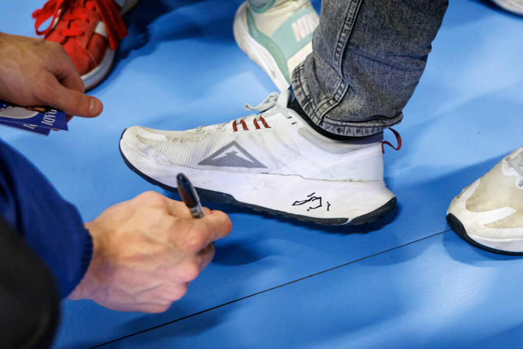 Landsliðsmenn árituðu myndir, treyjur, skó og hvað eina annað sem hægt var að hripa á auk þess sem myndum var smellt í gríð og erg áður en farið var í sturtu og skipt um föt eftir viðureignina sem Svíar unnu, 35:33. Liðin mætast á ný í Kaplakrika á morgun, laugardag, kl. 17.