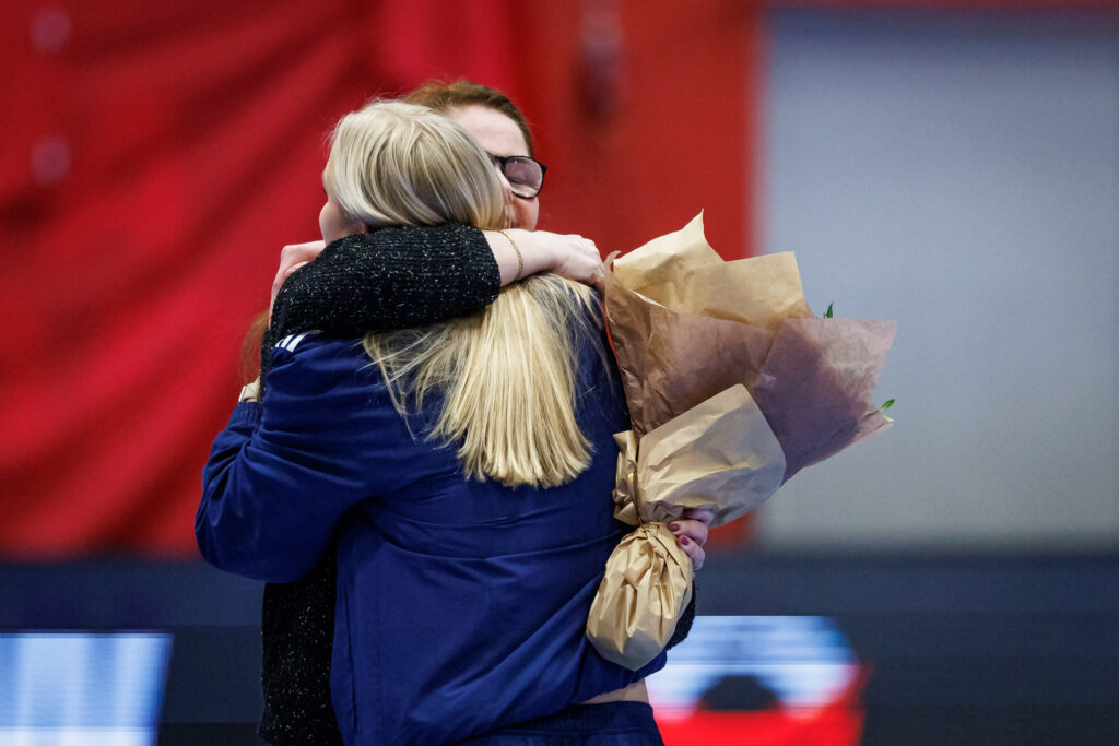 Obba, eða Þorbjörg Jóhanna Gunnarsdóttir, liðsstjóri kvennalandsliðsins í handknattleik til tveggja áratuga, var heiðruð af HSÍ í gærkvöld áður en viðureign Íslands og Svartfjallalands hófst á Ásvöllum. Obba var kölluð fram á keppnisgólfið. Jón Halldórsson formaður og Alfa Brá Oddsdóttir Hagalín og Thea Imani Sturludóttir landsliðskonur afhentu Obbu blómvönd. Eftir það risu áhorfendur úr sætum og klöppuðu Obbu verðskuldað lof í lófa.
