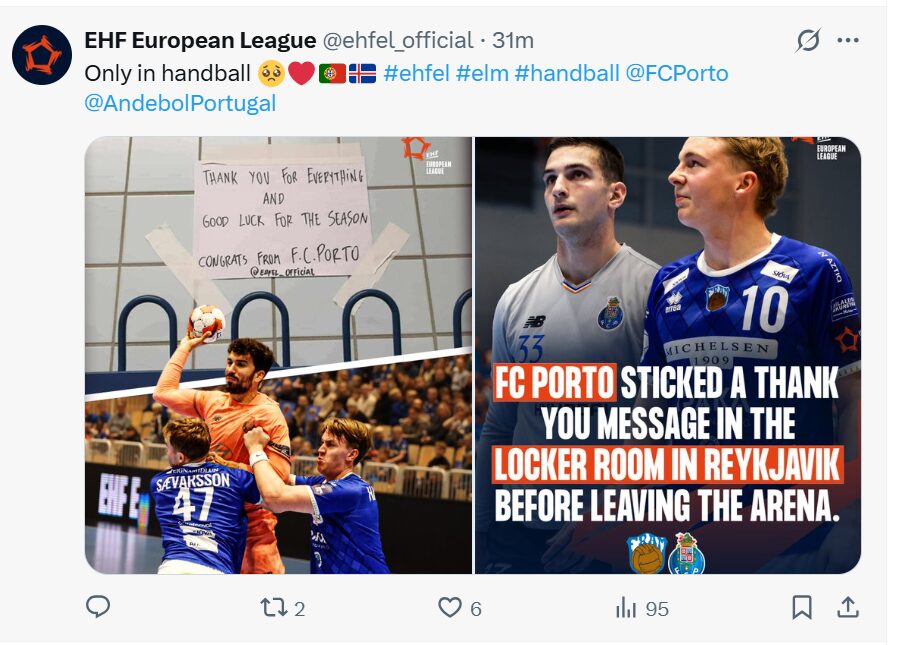 Sannarlega til sóma hjá portúgalska stórliðinu enda hefur Handknattleikssamband séð sérstaka ástæðu til þess að vekja athygli á drenglyndi Porto-liðsins með færslu á samfélagsmiðlum.