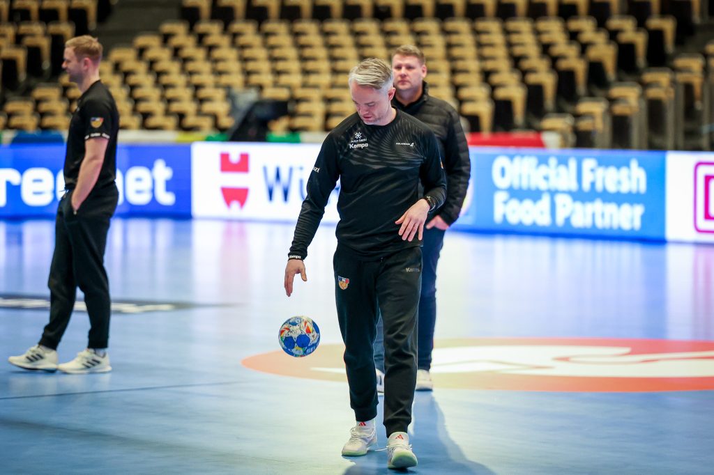 „Það er bara svipuð stemning og þegar ég var leikmaður. Maður fær alltaf ákveðinn fiðring þegar gengið er inn í keppnishöllina. Á keppnisdegi koma upp allar tilfinningarnar og maður stressaður. Ég vona að svo sé einnig hjá leikmönnum. Úr þessu þarf að vinna þegar á hólminn er komið,“ sagði Snorri Steinn Guðjónsson landsliðsþjálfari í handknattleik karla í samtali við handbolta.is í gær.