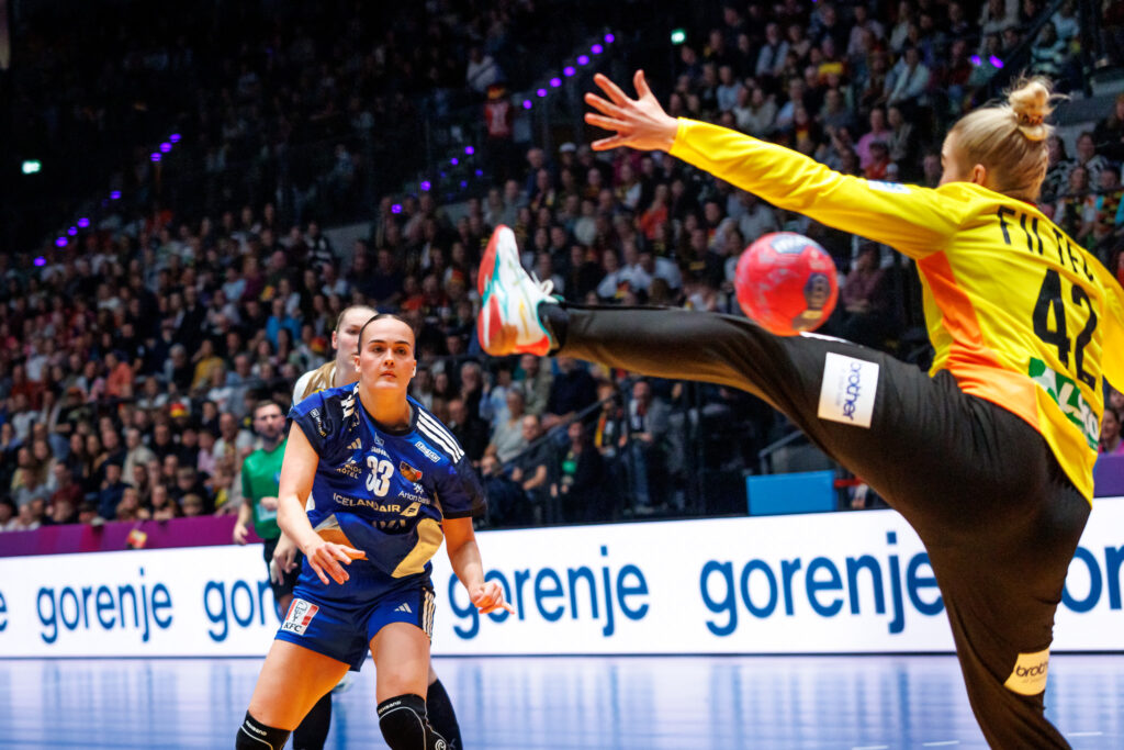 „Mér fannst við ná að sýna okkar bestu hliðar í leiknum og halda þýsku stelpunum við efni,“ segir Katrín Tinna sem skoraði fjögur mörk í fimm skotum af línunni og batt saman íslensku vörnina stóran hluta leiksins.